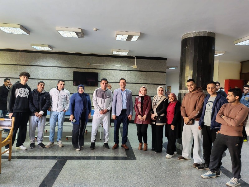 The Director General of Youth Welfare at Beni Suef University inspects the sports equipment at the Faculty of Mass Communication.