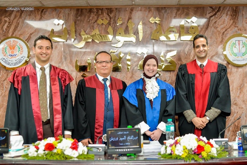 The family of the Faculty of Mass Communication—represented by Professor Dr. Mamdouh Mekawy, Dean of the Faculty; the Vice Deans; faculty members; the assisting staff; the Faculty Director; and all employees—extends its sincerest congratulations to Ms. Yasmin Mostafa,